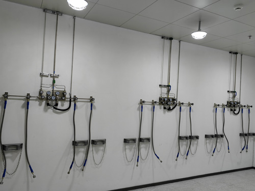 1.氣瓶間內壓力差轉換面版與實驗操作房間內的氣路手持終端間備選SS316LBA管去接觸,管路內從表面油亮度為Ra<0.4umBA級管路。